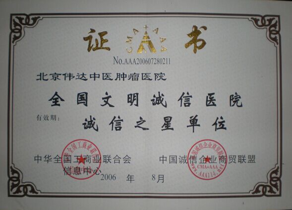 北京伟达中医肿瘤医院为患者办事,从患者很关心、很直接、很现实的利益问题入手。更要想患者之所想,急患者之所急,帮患者之所需,认真解决患者生存问题。伟达医院承认并尊重其他医院的检查结果,患者来我院就诊,可执其他医院的检查报告,不会要求患者重复检查。伟达中医肿瘤医院是全国首批中医肿瘤医院,是北京市卫生局批准的医保定点单位,隶属于卫生部中国医促会中医肿瘤防治专业委员会,高度注重思想工作建设,多年来,一直坚持公益事业的发展,医务人员更是以身作则,医院创始人起到良好的带头作用。